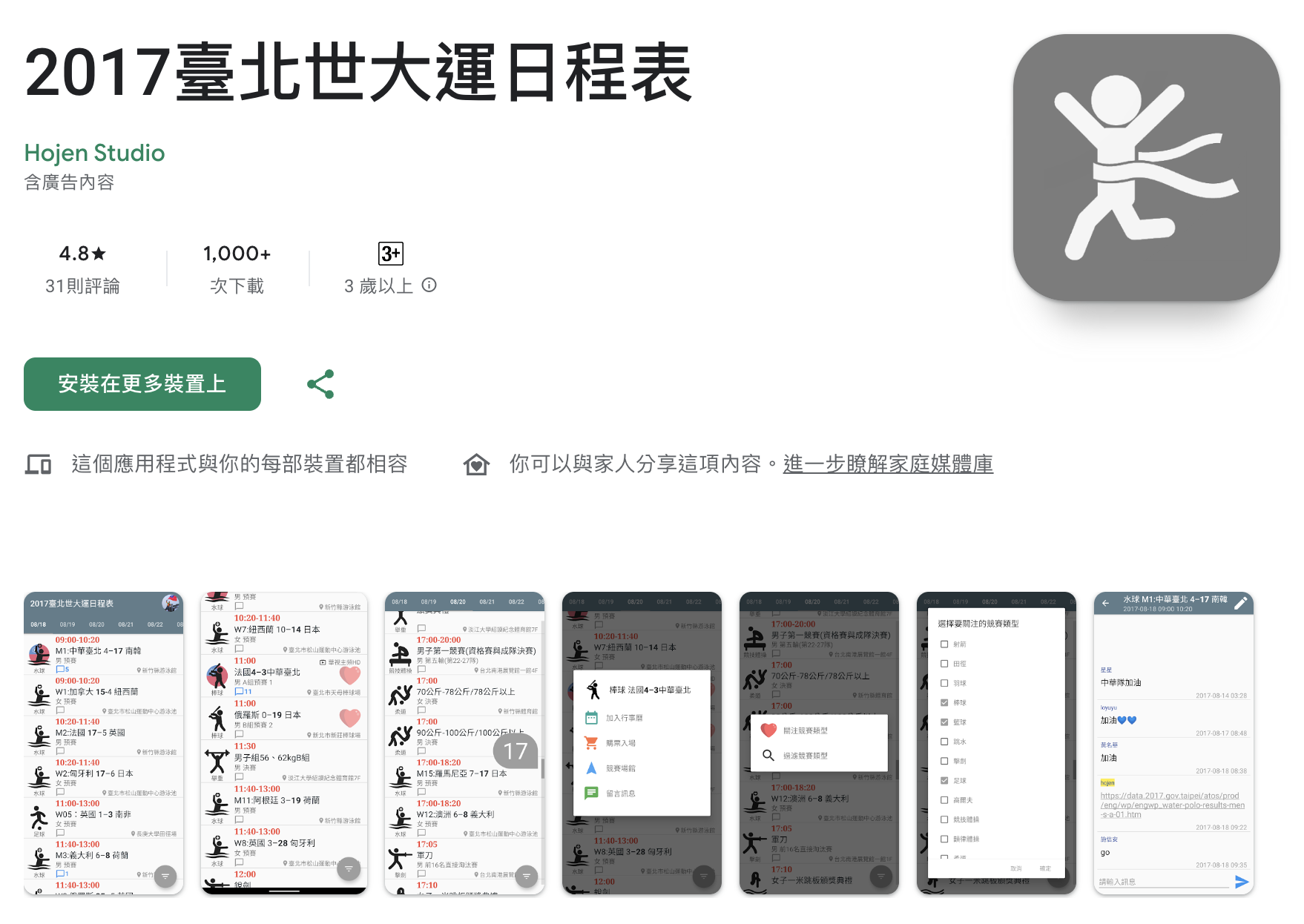提供2017臺北世大運每日賽程資料,可針對每個賽程留言聊天,並特別標示台灣隊參與賽事